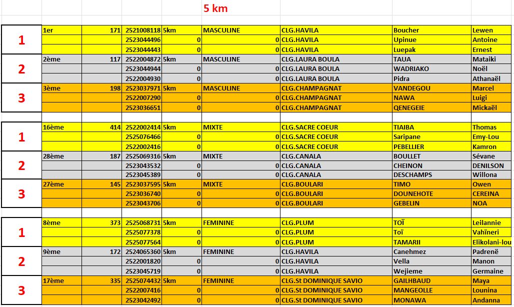 Résultats, malgré le cafouillage du poste A qui orientait le 1500m et le 3000m, ainsi que le vol de médailles et de tee-shirt dans le carton UNSS...